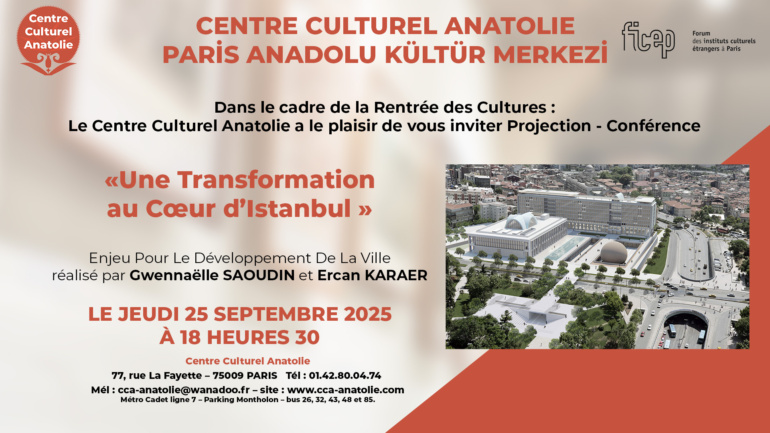 Dans le cadre de la Rentrée des Cultures : Le Centre Culturel Anatolie a le plaisir de vous inviter Projection – Conférence «Une Transformation au Cœur d’Istanbul » Enjeu Pour…