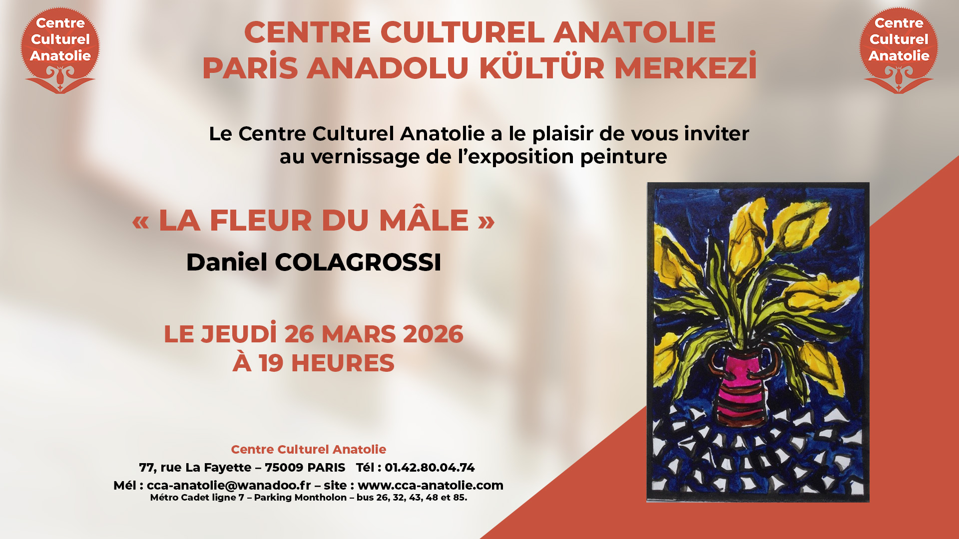 Le Centre Culturel Anatolie a le plaisir de vous inviter au vernissage de l’exposition peinture